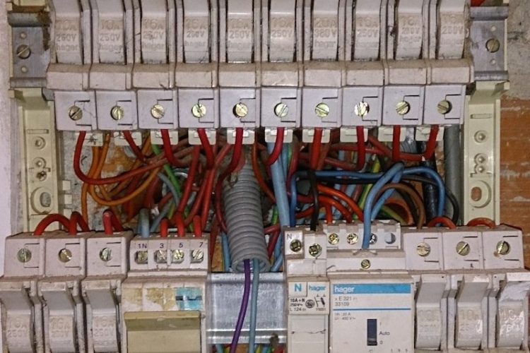 Tableau electrique triphase domestique Source google image: https://www.installation-renovation-electrique.com/images/1-tableau-electrique-triphase-vetuste.JPG