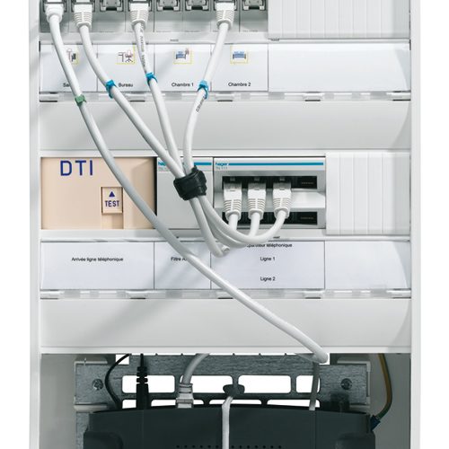 Tableau electrique rj45 Source google image: https://ezdomotik.files.wordpress.com/2011/01/coffret-communication-hager.jpg