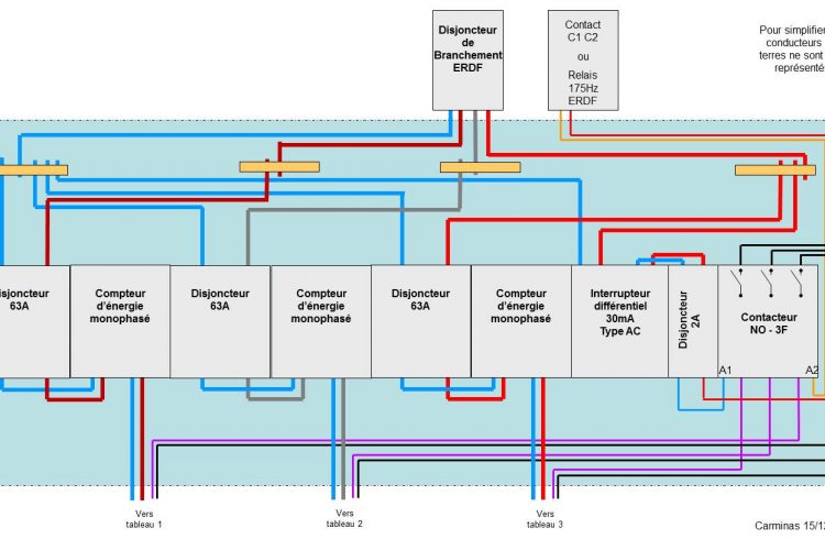 Tableau electrique monophasé Source google image: https://www.forum-electricite.com/schemas/schema-tableau-electrique-triphase-avec-comptage.jpg